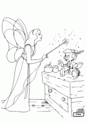 Pinocchio nonostante la sua tendenza a raccontare bugie ed a mettersi sempre nei guai, riesce alla fine a mettere giudizio e a diventare un bravo burattino che aiuta il povero babbo Geppetto. La fatina riconosce i suoi sforzi e come promesso lo trasforma in un bambino vero.